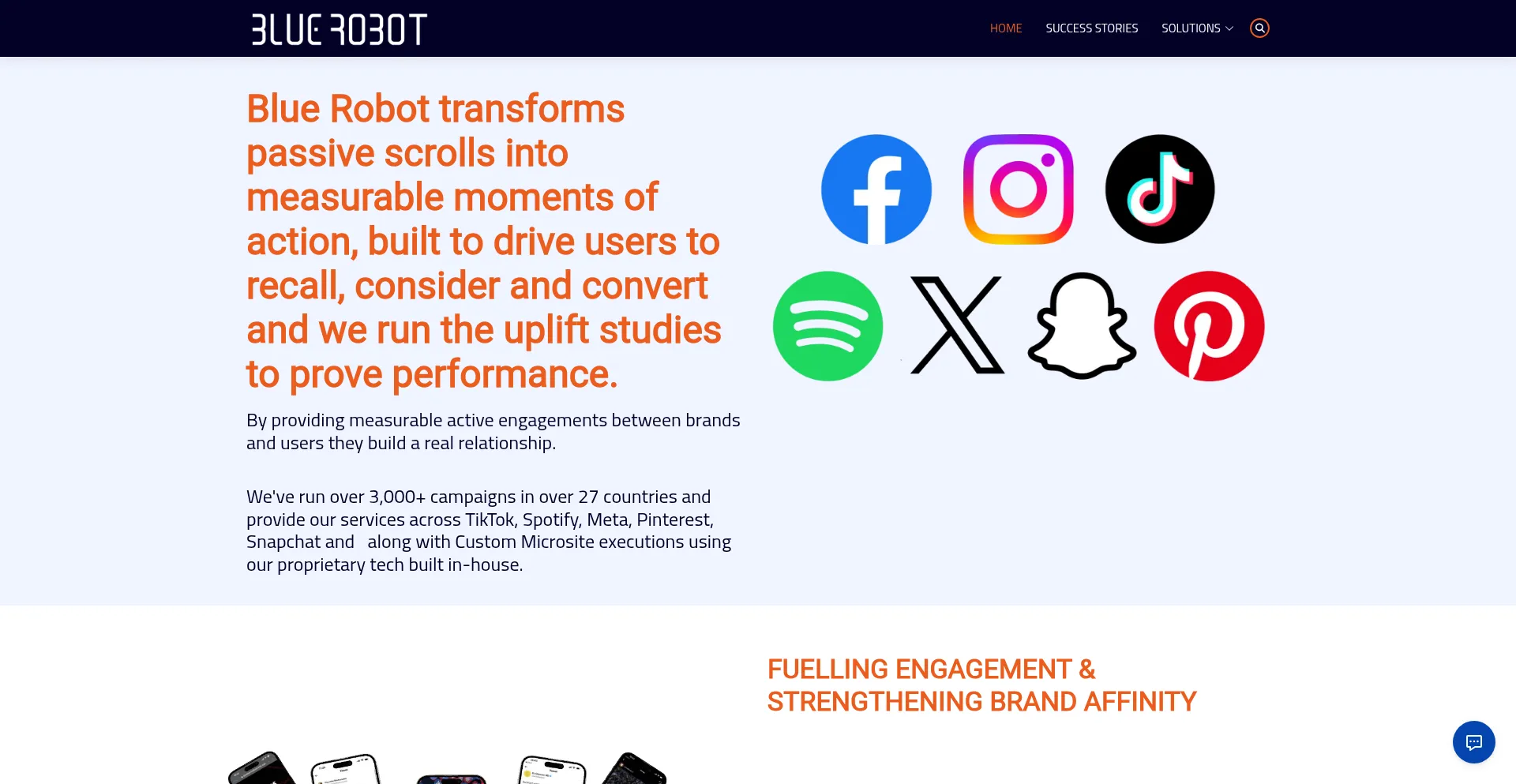 bluerobot.com 使用 Bootstrap,这是一个广泛采用的开源响应式网页开发框架。Bootstrap 通过标准化组件和样式实现移动友好界面的高效创建。