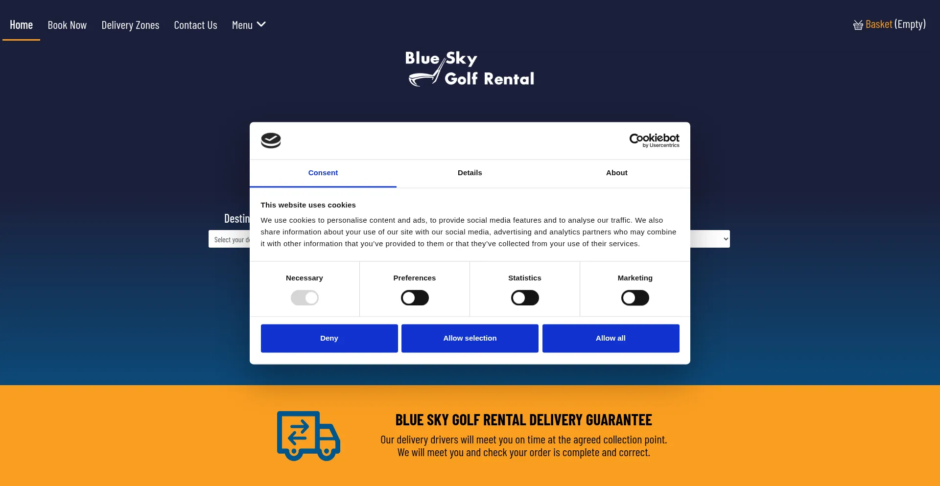 该网站实现符合GDPR或CCPA等隐私法规的cookie同意机制。这表明 blueskygolf-rental.com 遵守数据保护标准并为用户提供对个人数据收集实践的控制。