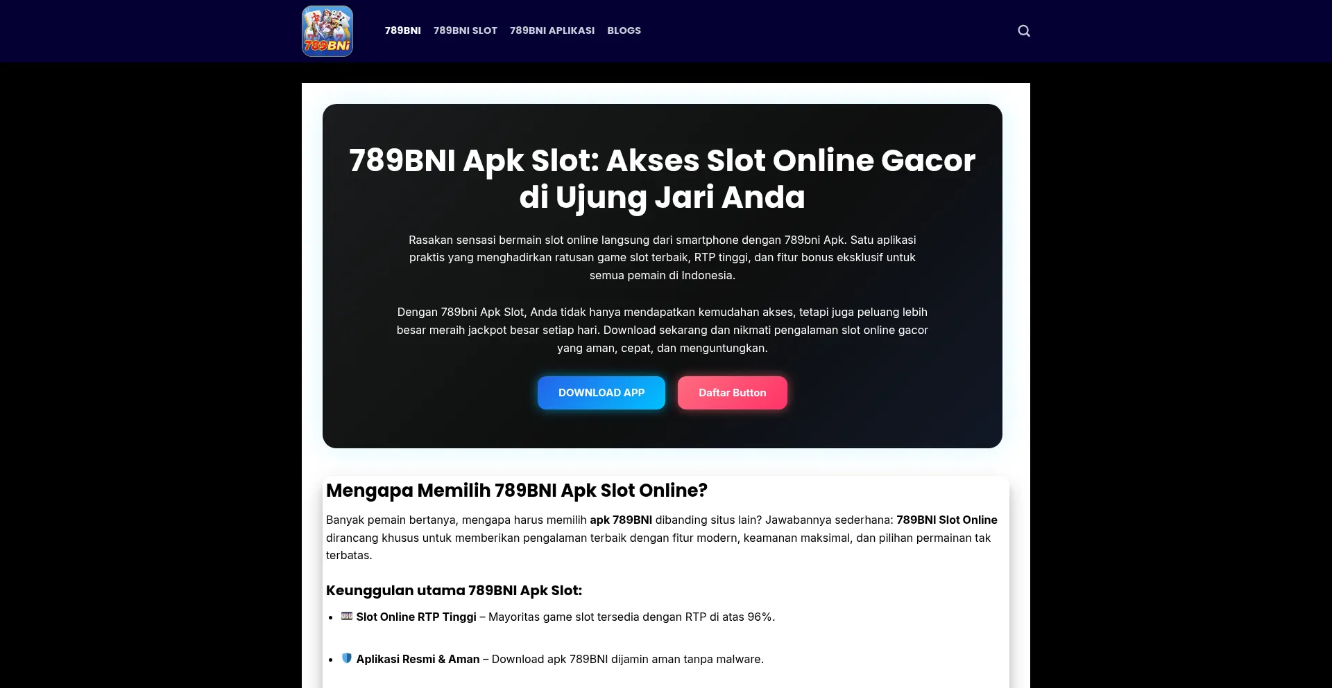 789BNI Apk Slot: Slot Online Gacor & Mudah di Akses