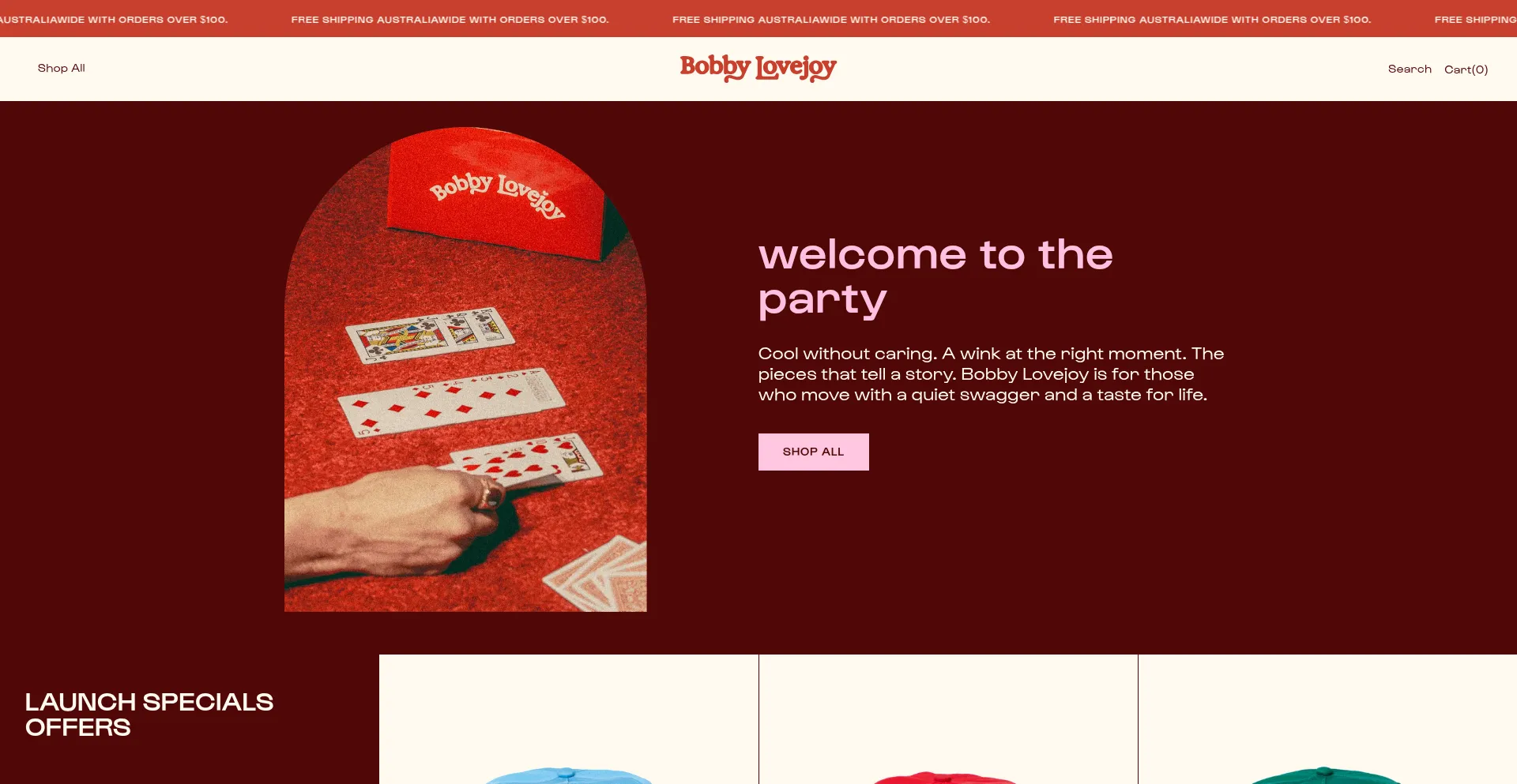Launched in 2025, Bobby Lovejoy is an Australian clothing label blending coastal swagger and city hum. Our curated line of headwear and apparel lays the foundation for a bold fu...