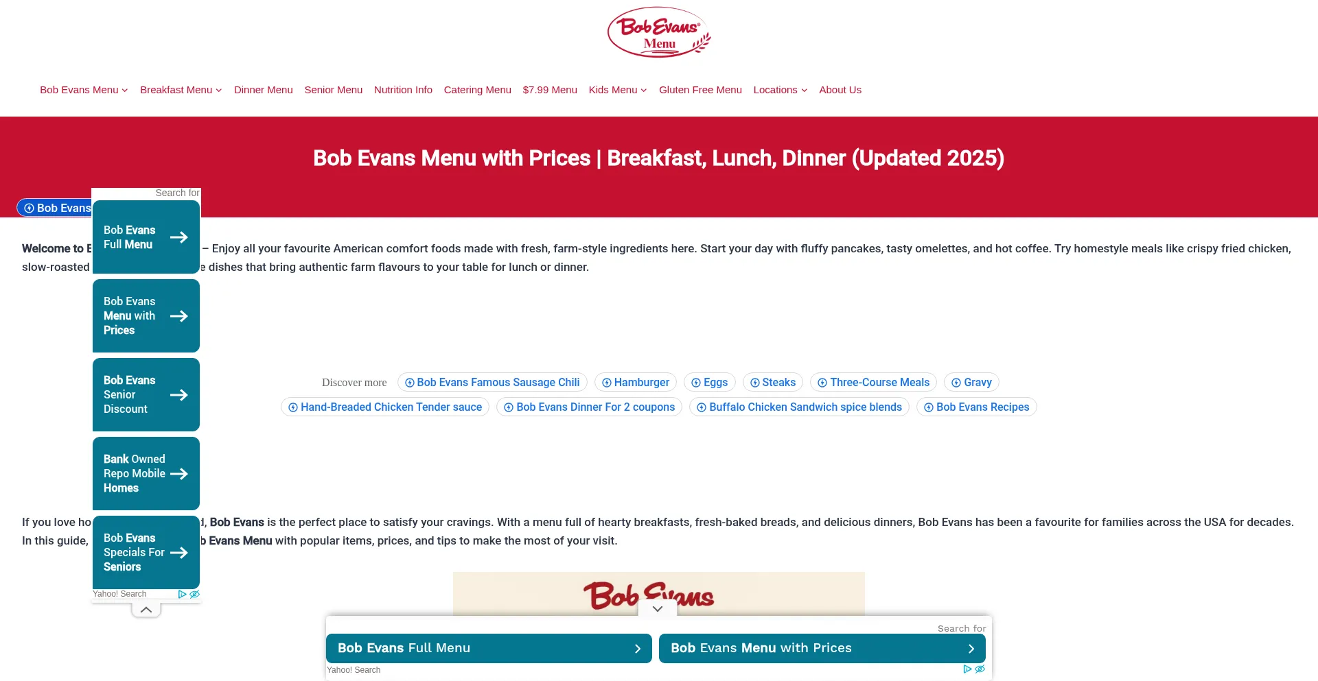 Bob Evans Menu with Prices | Breakfast, Lunch, Dinner (Updated 2025)