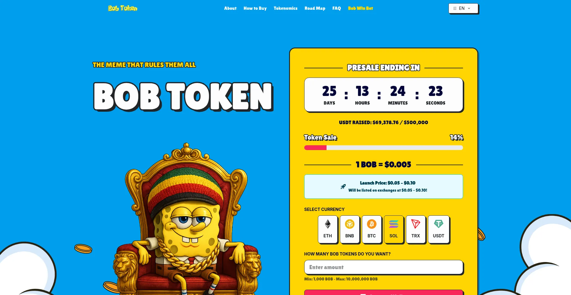 Join the Bob Token revolution! Invest in the most exciting memecoin project with integrated casino platform. Participate in our presale and be part of the crypto future. Secure,...
