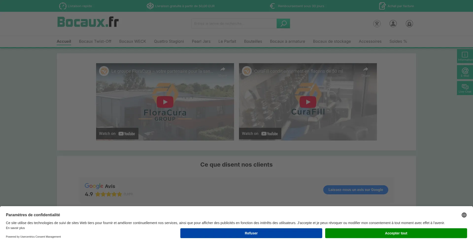 Bocaux.fr – Bouteilles en verre et emballages plastiques, livraison rapide garantie