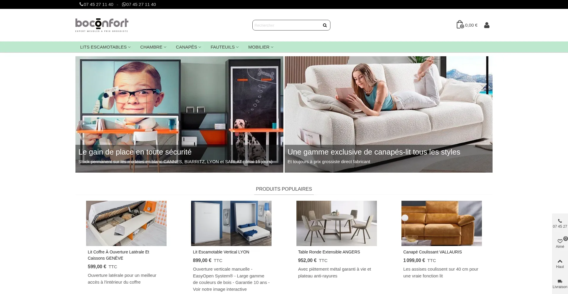 Vente de lits coffres, lits escamotables, canapés-lits. Spécialiste de literie et mobilier gain de place