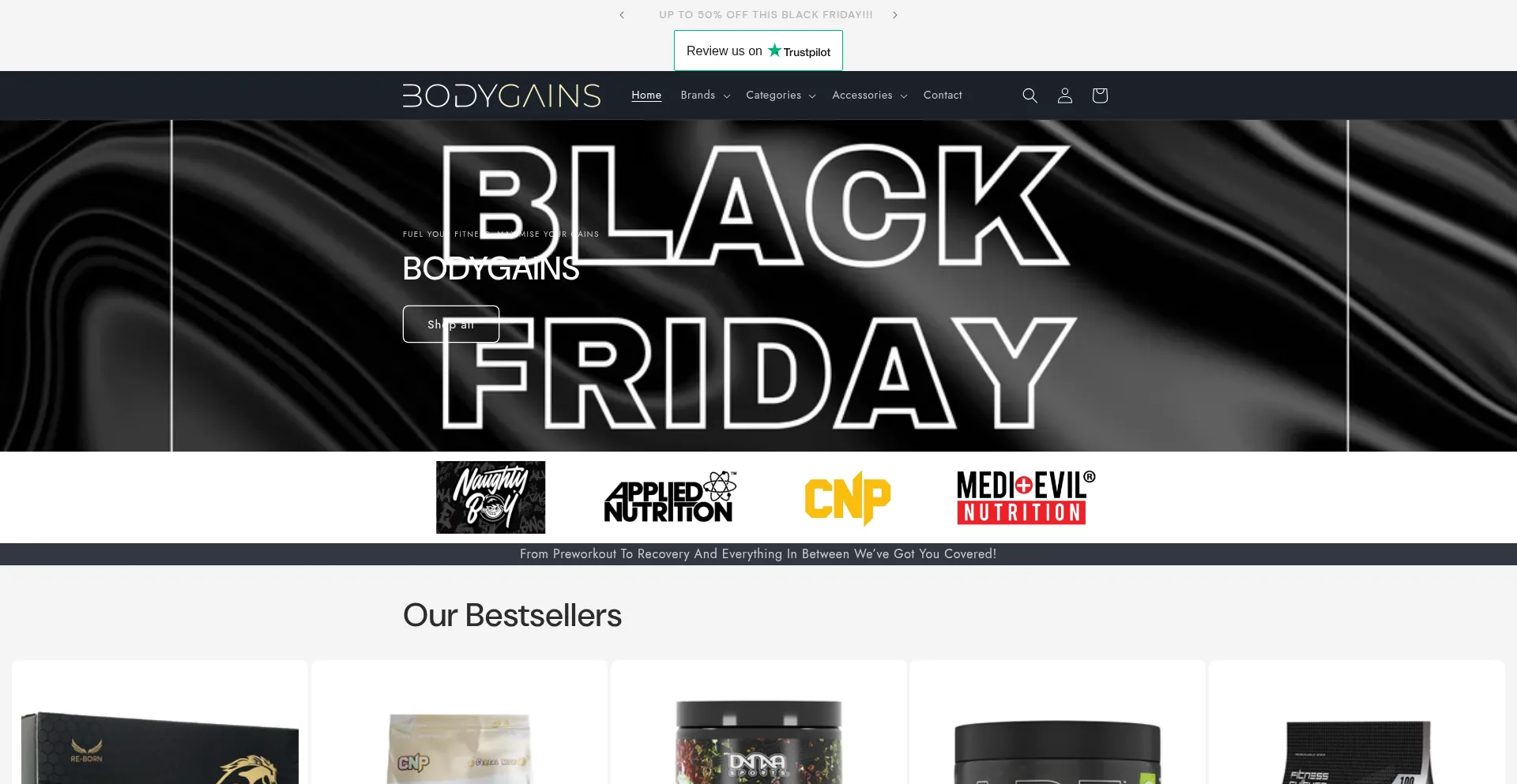 该网站利用流行产品名称和品牌来吸引流量并产生用户兴趣。这些产品可能通过促销活动或折扣策略提供,旨在增加 bodygains.co.uk 的访客参与度和转化率。