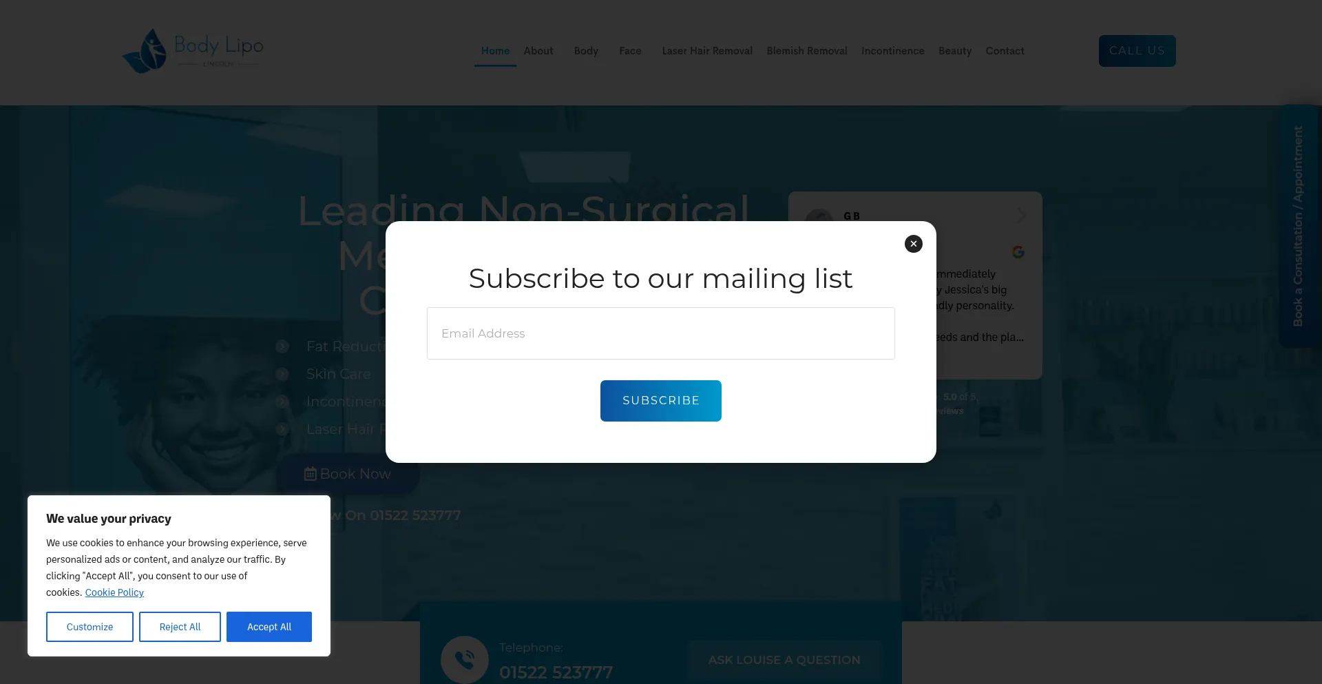 Leading Non-Surgical Medical Aesthetic Clinic in Lincoln Fat Reduction Skin Care Incontinence Treatments Laser Hair Removal Book a Consultation / Appointment Book Now Call Now O...