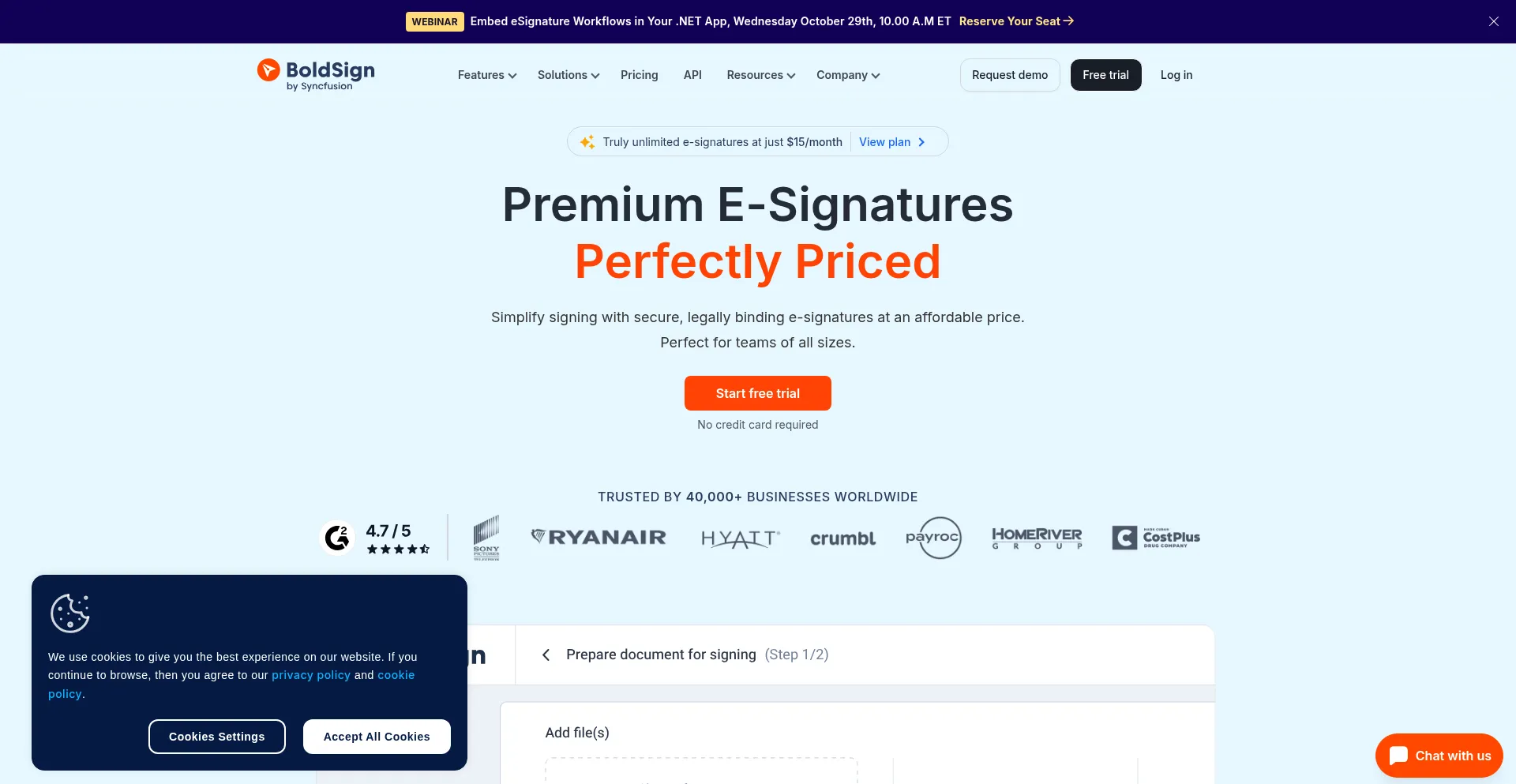 Sign contracts securely with BoldSign! Send, track, and embed workflows easily. Power it up with our API—try it free today!