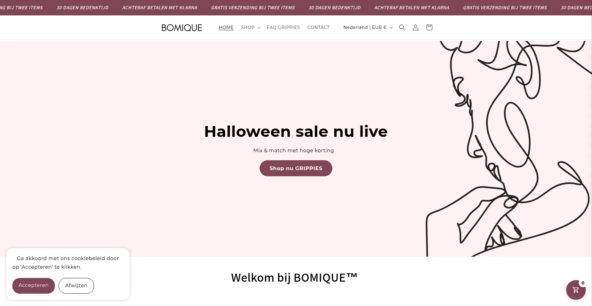 网站上存在社交媒体链接表明 bomique.nl 在社交媒体上维护官方账户,这是可信度和参与度的积极信号。