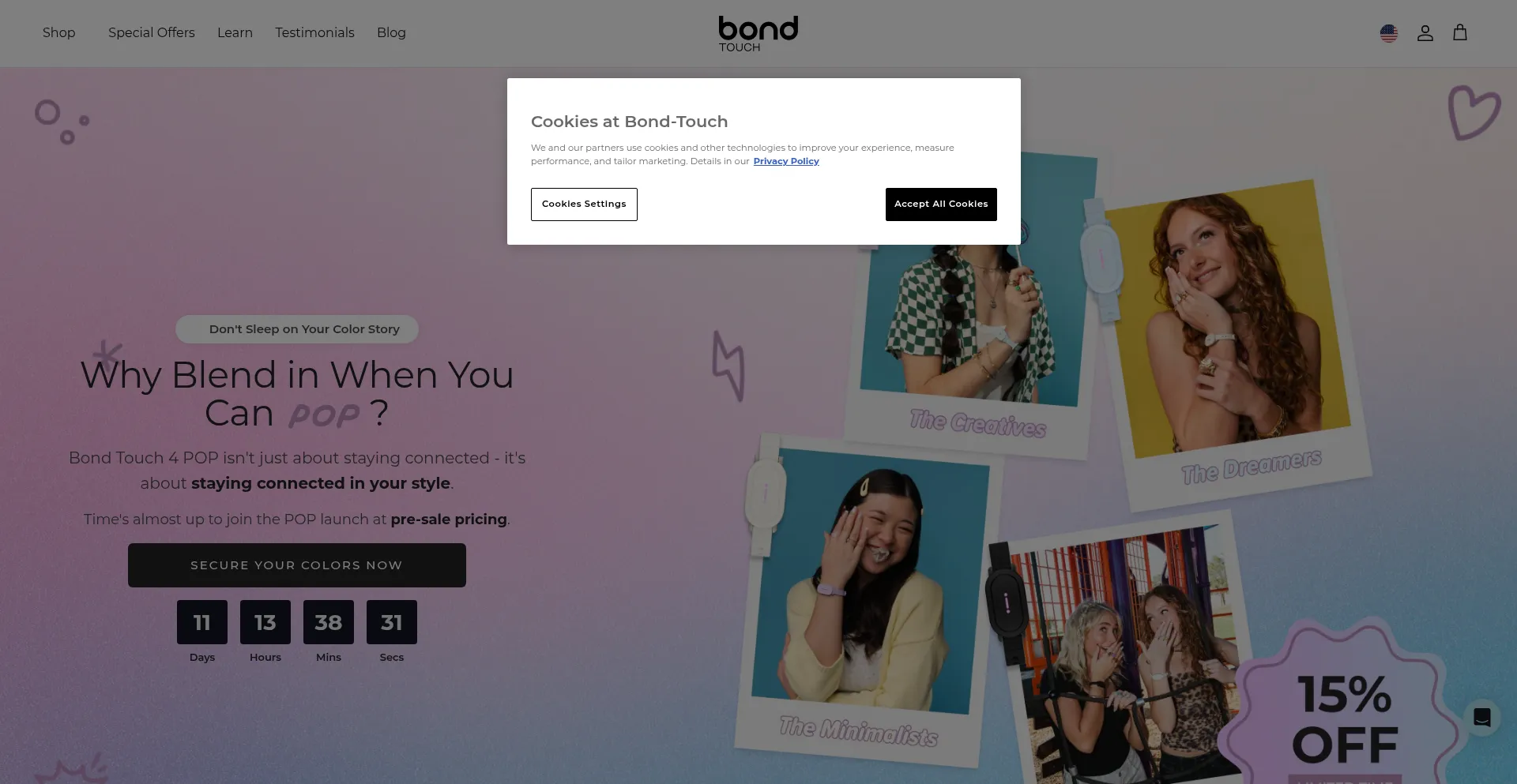 网站上存在社交媒体链接表明 bond-touch.com 在社交媒体上维护官方账户,这是可信度和参与度的积极信号。