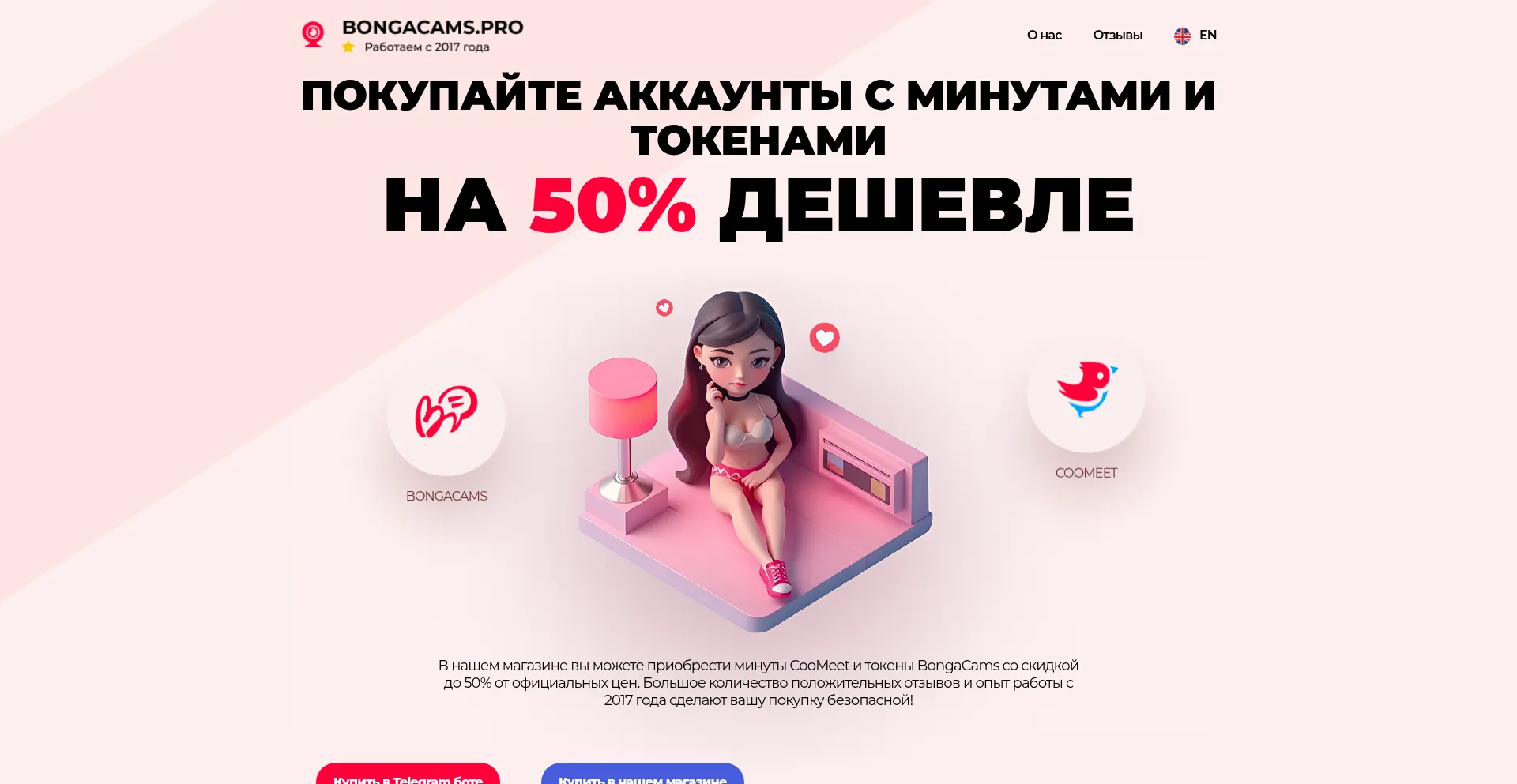 BongaCams.Pro — магазин аккаунтов с токенами BongaCams и минутами CooMeet Premium. Скидки до 50%, моментальная выдач...