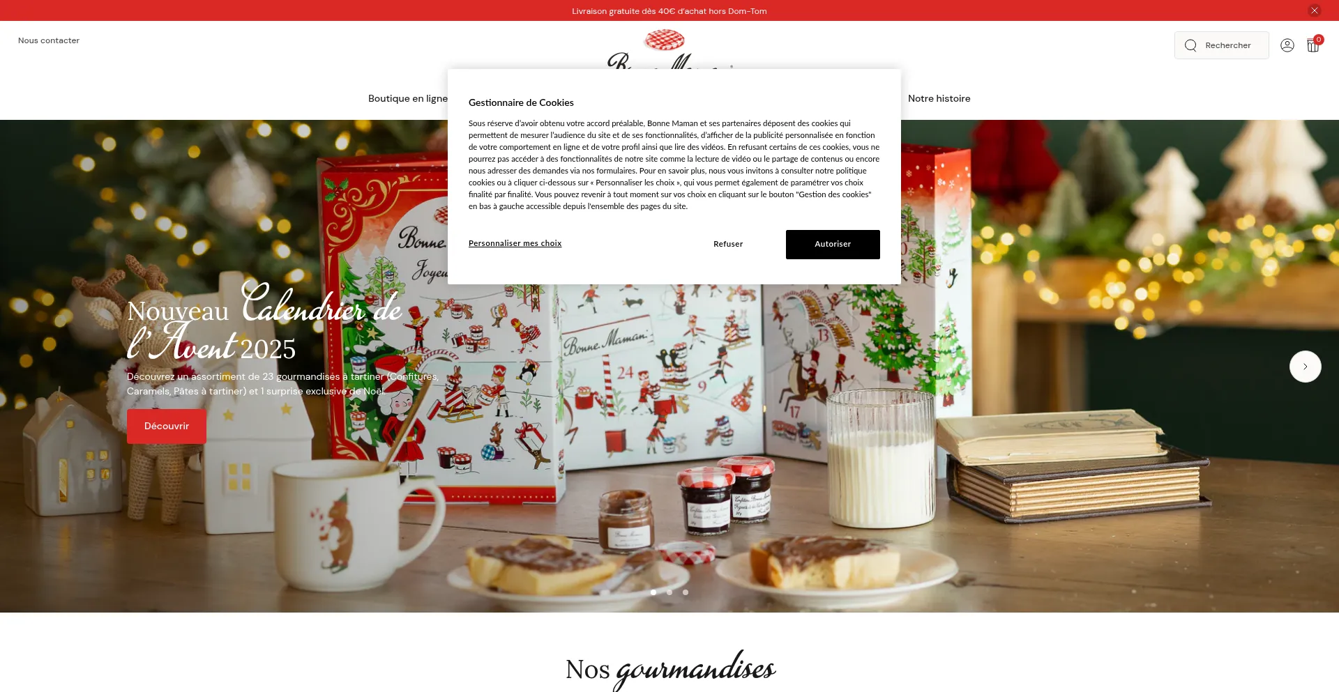 该网站实现符合GDPR或CCPA等隐私法规的cookie同意机制。这表明 bonne-maman.com 遵守数据保护标准并为用户提供对个人数据收集实践的控制。