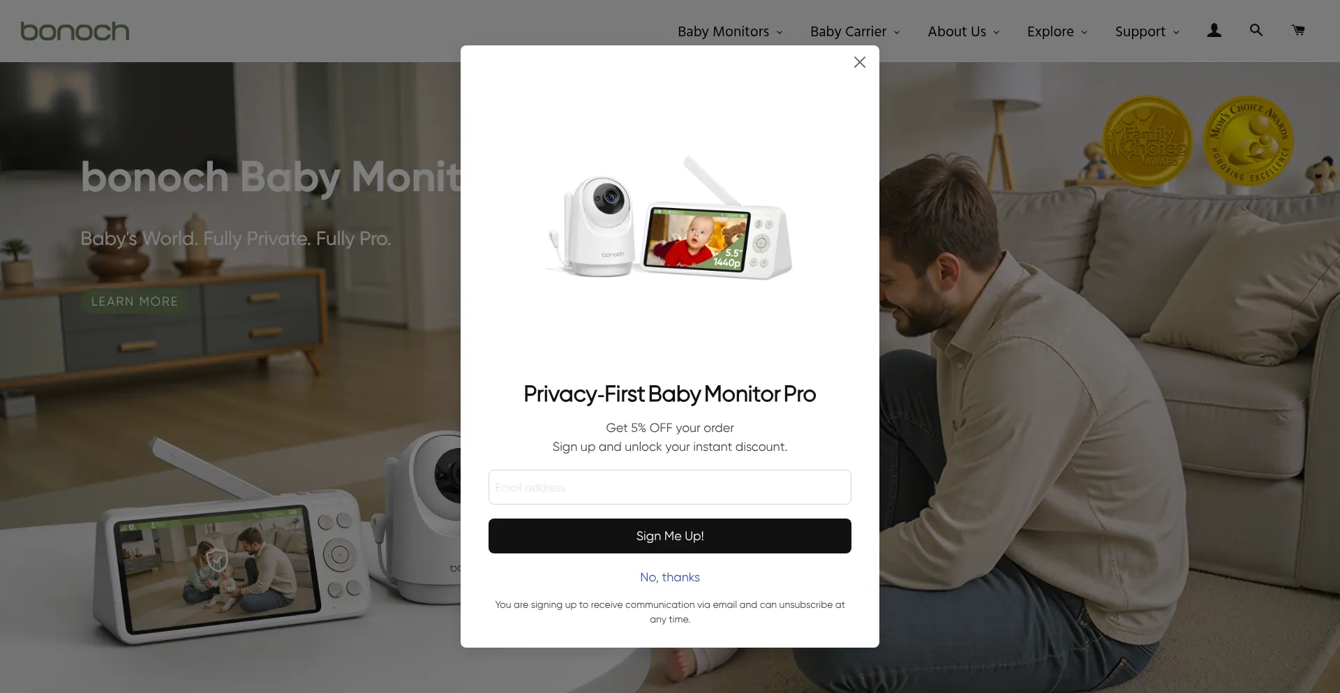 该网站实现数据收集表单,请求个人信息,包括姓名、电子邮件地址、电话号码或其他敏感详细信息。用户应验证 bonoch.com 的合法性并在提交个人数据前查看隐私政策。