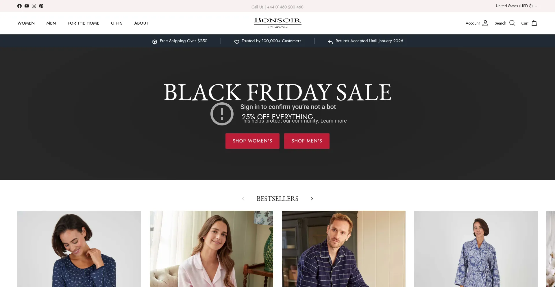 网站上存在社交媒体链接表明 bonsoiroflondon.com 在社交媒体上维护官方账户,这是可信度和参与度的积极信号。
