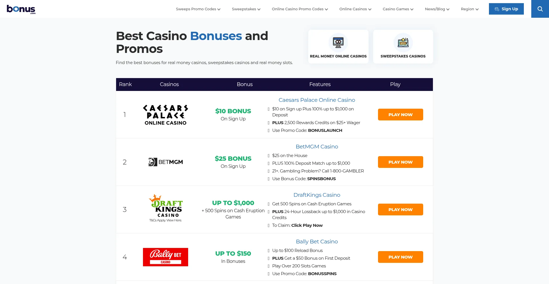 Best Casino Sign-up Bonuses and Offers in U.S. 2025 - Bonus.com