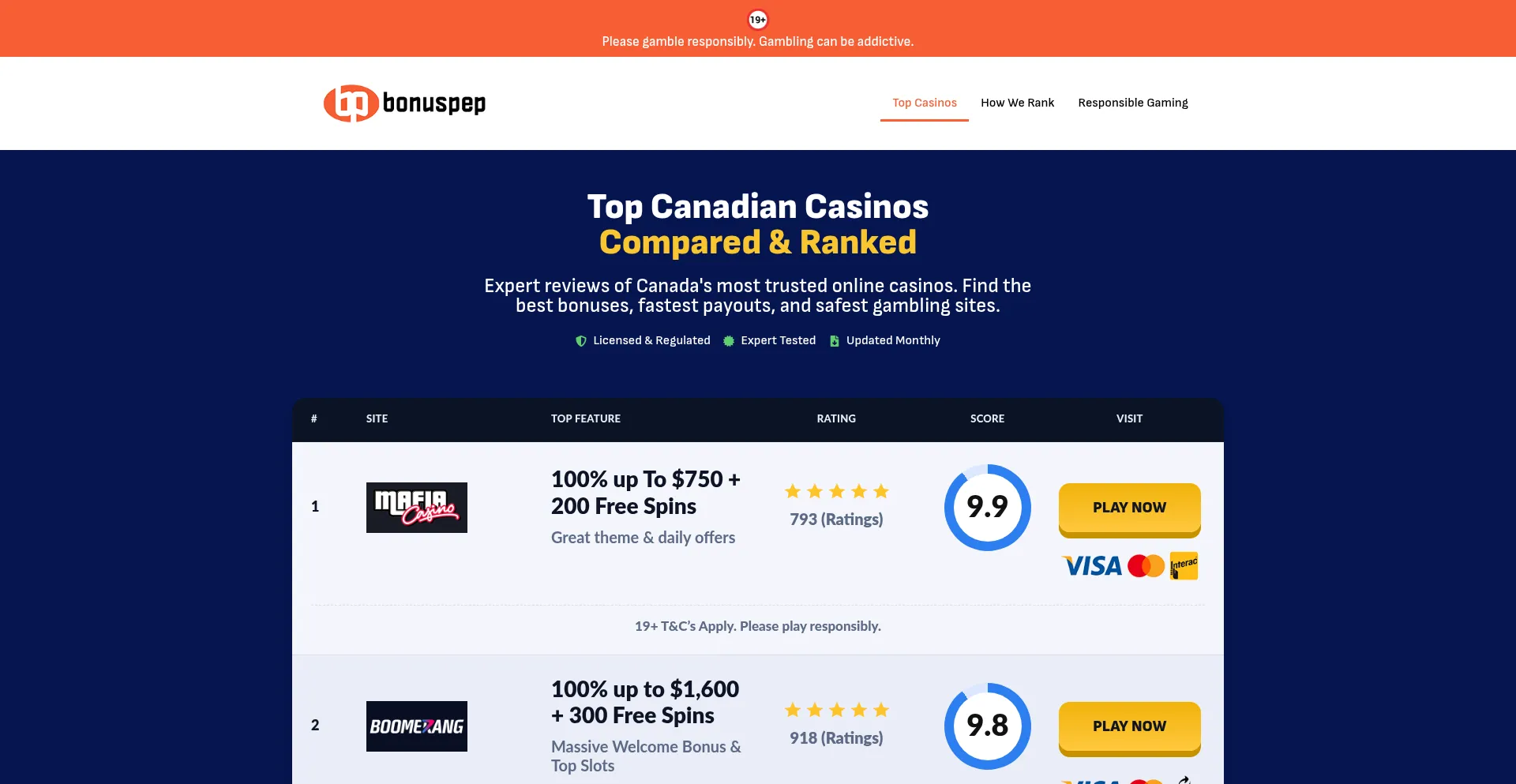 Bonuspep.com 运营以低可信度和不可信操作做法为特征的在线赌博平台,可能损害玩家安全和财务利益。