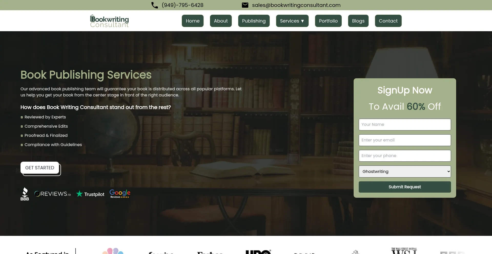 Book writing consultant offering professional services in publishing, ghostwriting, editing, Copyright Registration, cover design, trailers, and audiobooks.