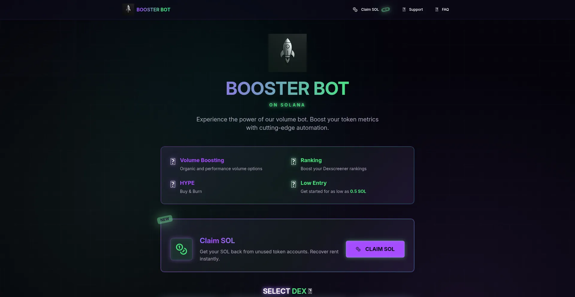 Experience the power of our volume bot. Boost your Solana token metrics with organic volume, ranking, and trending tools starting from just 1 SOL.