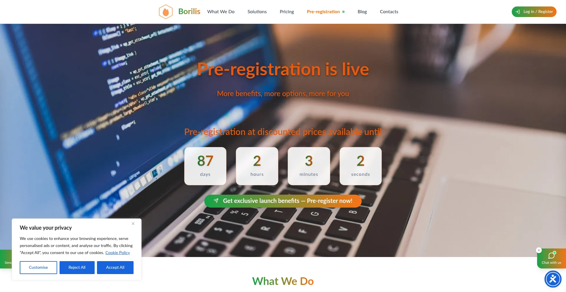 该网站实现数据收集表单,请求个人信息,包括姓名、电子邮件地址、电话号码或其他敏感详细信息。用户应验证 borilis.com 的合法性并在提交个人数据前查看隐私政策。