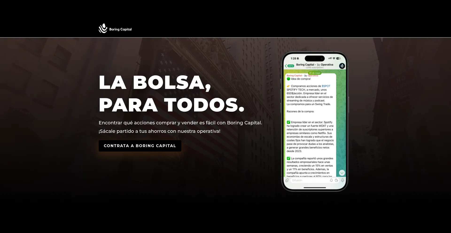 Encontrar qué acciones comprar y vender es fácil con Boring Capital.