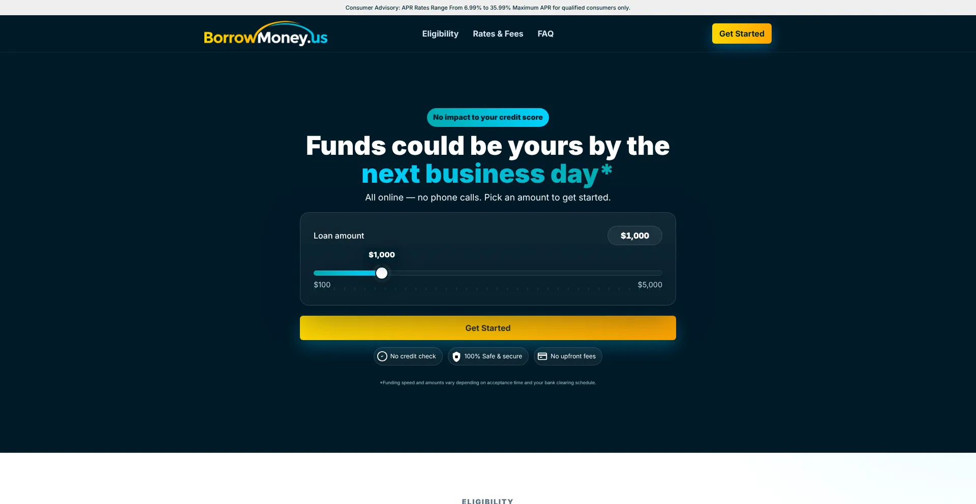Borrow Money | $100 - $5000 No Fees, No Paperwork