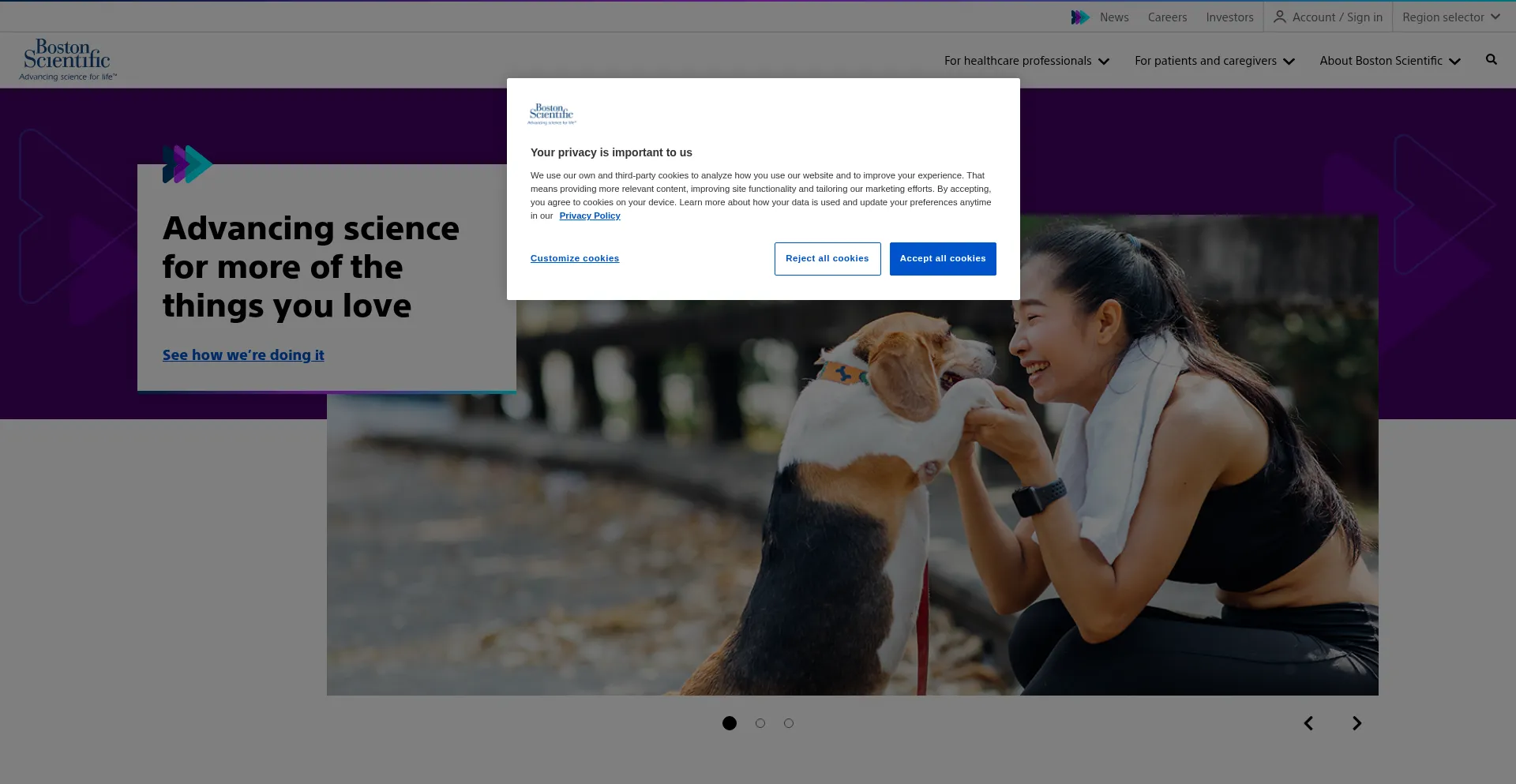该网站实现符合GDPR或CCPA等隐私法规的cookie同意机制。这表明 bostonscientific.com 遵守数据保护标准并为用户提供对个人数据收集实践的控制。