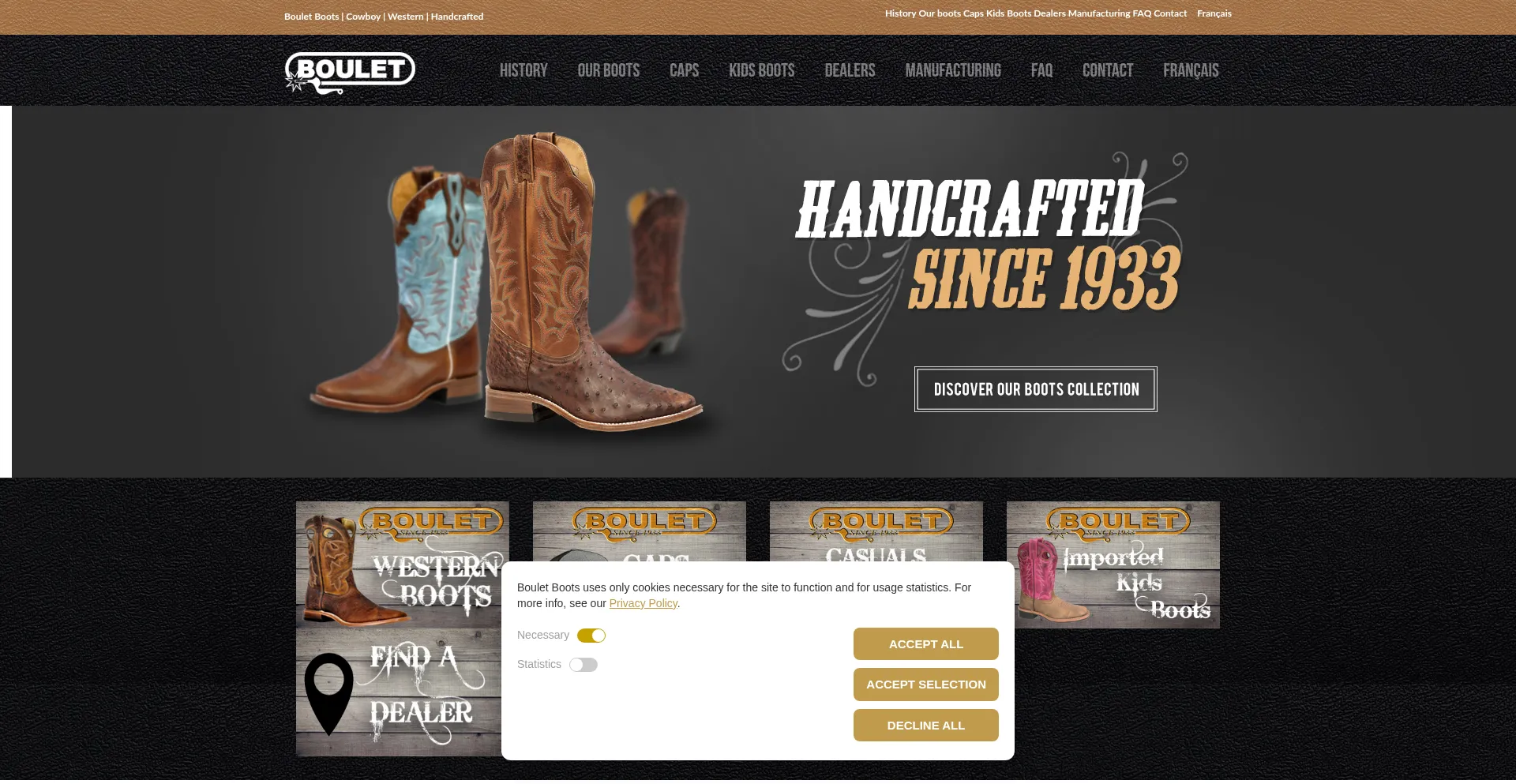bouletboots.com 使用 Bootstrap,这是一个广泛采用的开源响应式网页开发框架。Bootstrap 通过标准化组件和样式实现移动友好界面的高效创建。