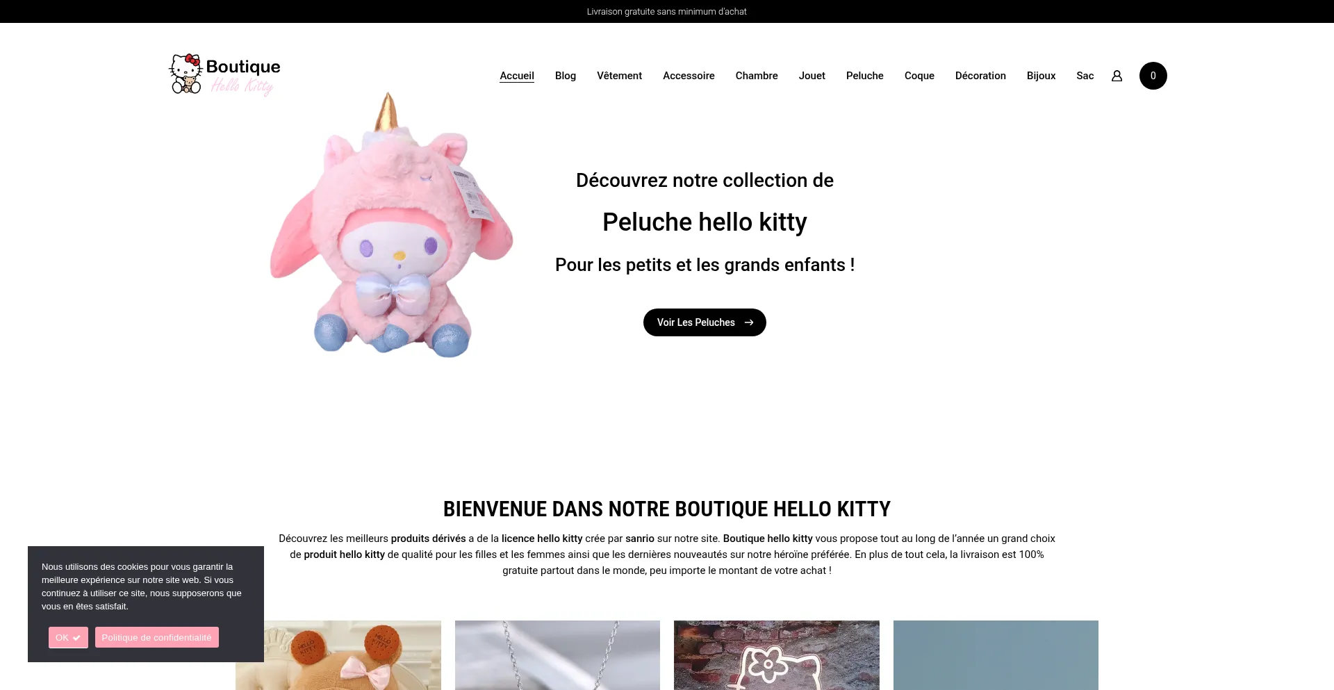 Vous trouverez sur la boutique hello kitty plus de 1300 articles hello kitty de qualité sélectionner avec soin, que ce soit des tee-shirt