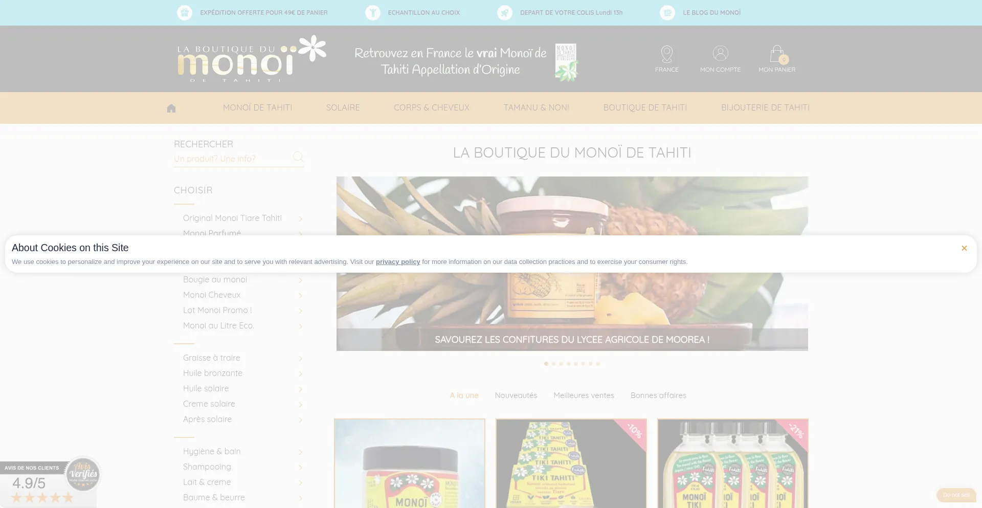 该网站实现符合GDPR或CCPA等隐私法规的cookie同意机制。这表明 boutique-monoi-tahiti.com 遵守数据保护标准并为用户提供对个人数据收集实践的控制。