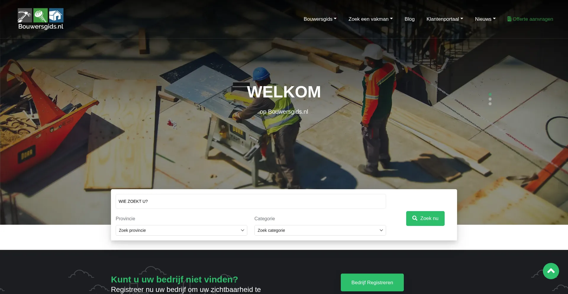 bouwersgids.nl 使用 Bootstrap,这是一个广泛采用的开源响应式网页开发框架。Bootstrap 通过标准化组件和样式实现移动友好界面的高效创建。