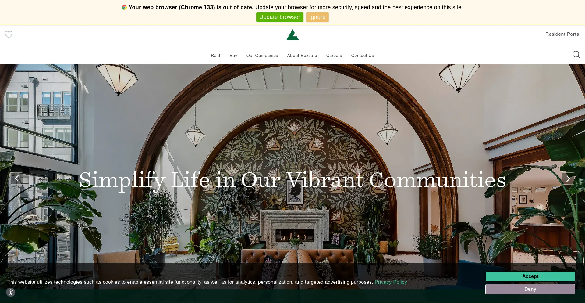 该网站实现数据收集表单,请求个人信息,包括姓名、电子邮件地址、电话号码或其他敏感详细信息。用户应验证 bozzuto.com 的合法性并在提交个人数据前查看隐私政策。