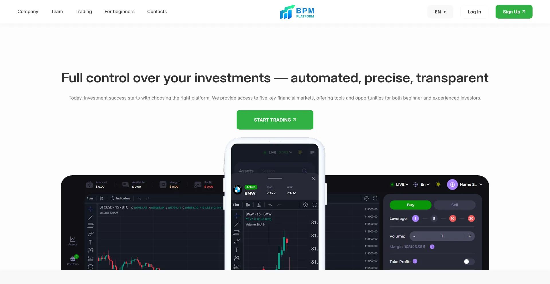 Invest and trade assets across 5 markets through our financial platform. Modern tools and transparent conditions for effective capital management.