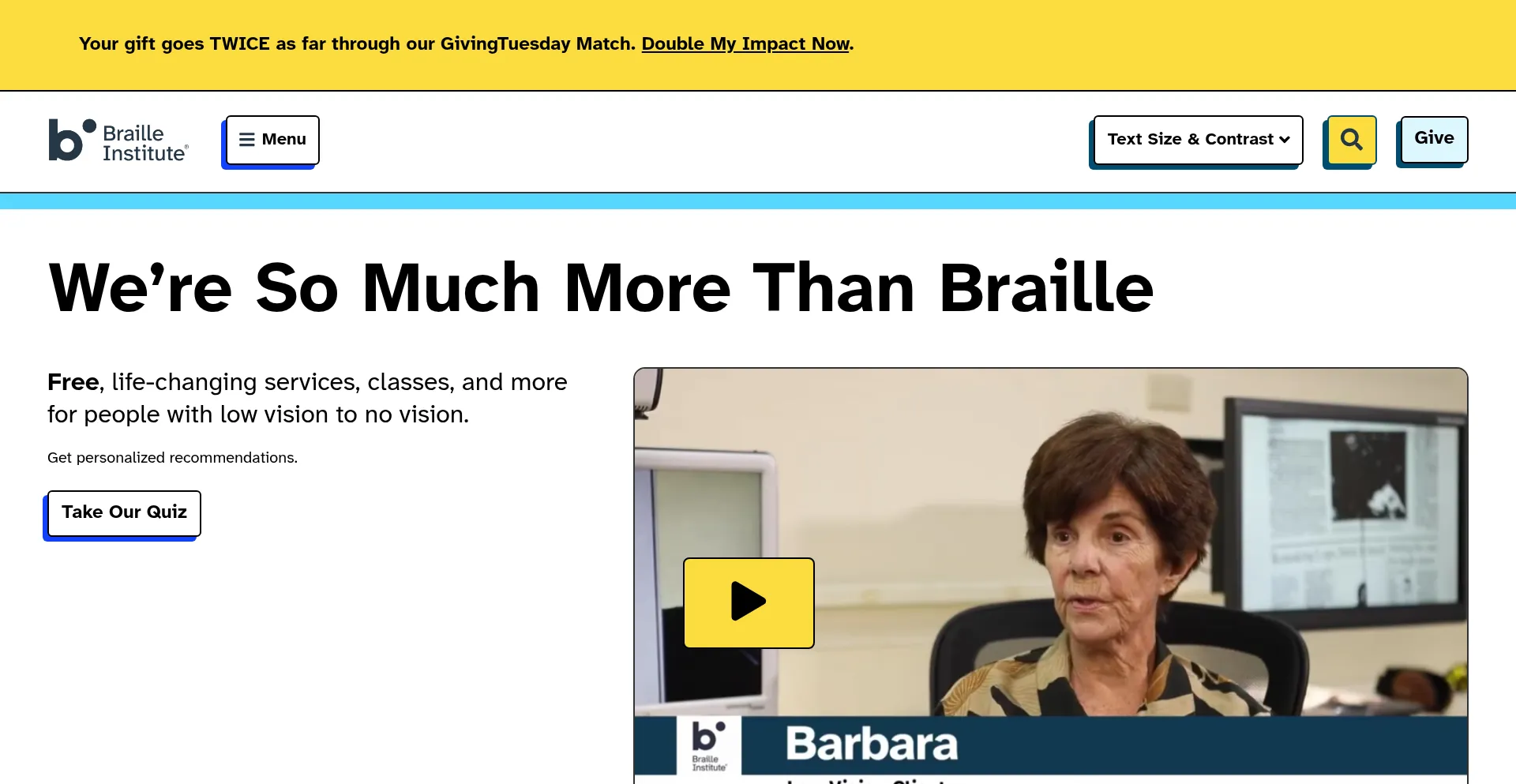 该网站实现数据收集表单,请求个人信息,包括姓名、电子邮件地址、电话号码或其他敏感详细信息。用户应验证 brailleinstitute.org 的合法性并在提交个人数据前查看隐私政策。