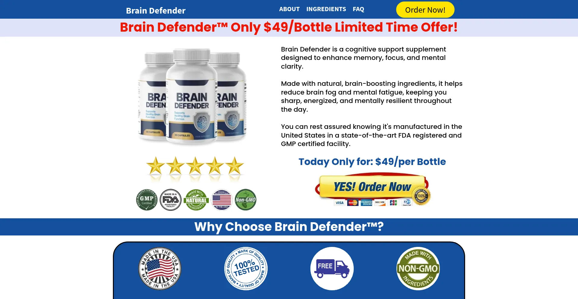 Brain Defender is a cognitive support supplement designed to enhance memory, focus, and mental clarity.
