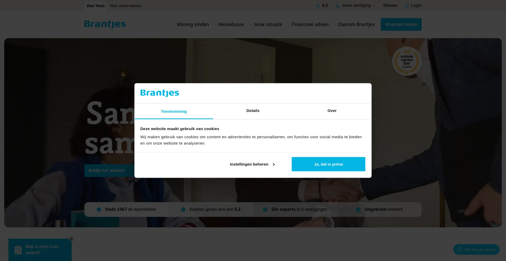 该网站实现符合GDPR或CCPA等隐私法规的cookie同意机制。这表明 brantjesmakelaars.nl 遵守数据保护标准并为用户提供对个人数据收集实践的控制。