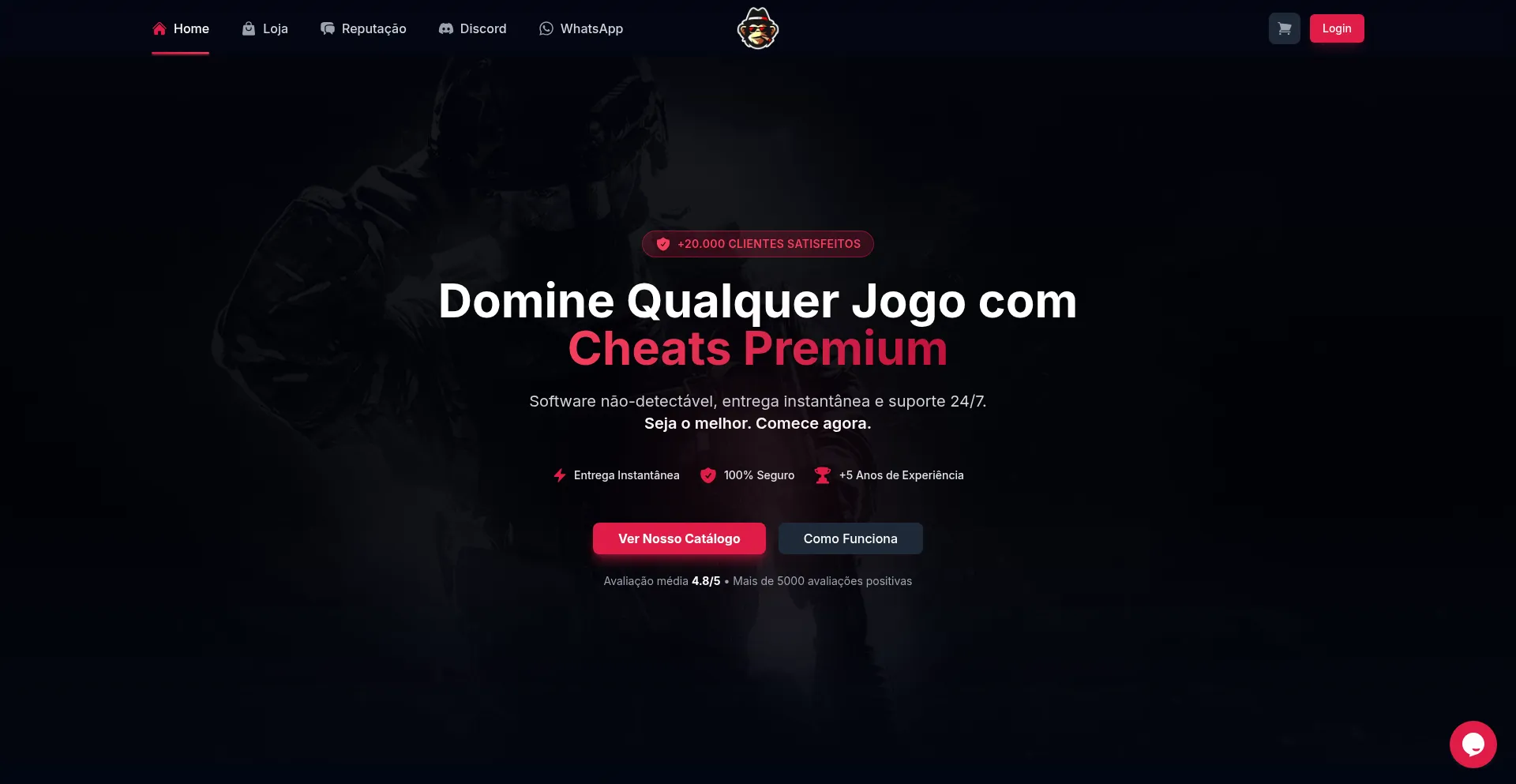 Compre cheats premium e softwares não-detectáveis com entrega instantânea e suporte 24/7. Métodos de pagamento seguros, preços competitivos e confiado por milhares de jogad...