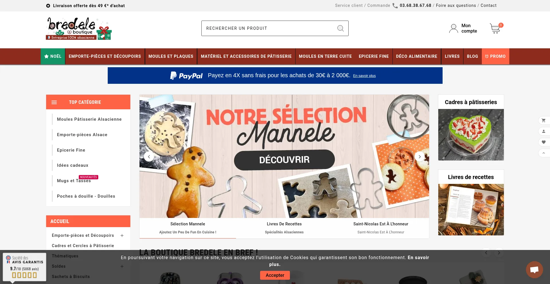 Boutique en ligne consacrée à la confection des Bredele d'Alsace. Plus de 800 modèles d'emporte-pièces, découpoirs, plaques et moules pour vos Bredele.