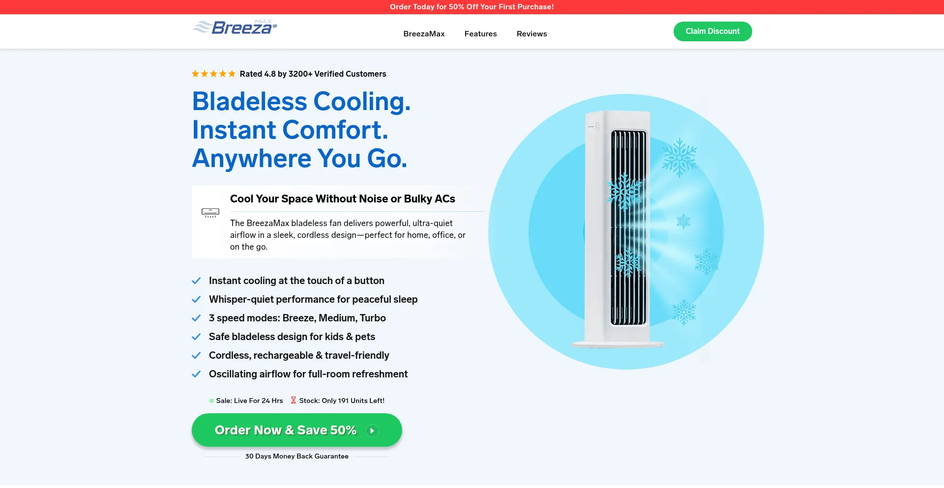 BreezaMax | Special 50% Off Discount on Now | Bladeless Cooling. Instant Comfort. Anywhere You Go.