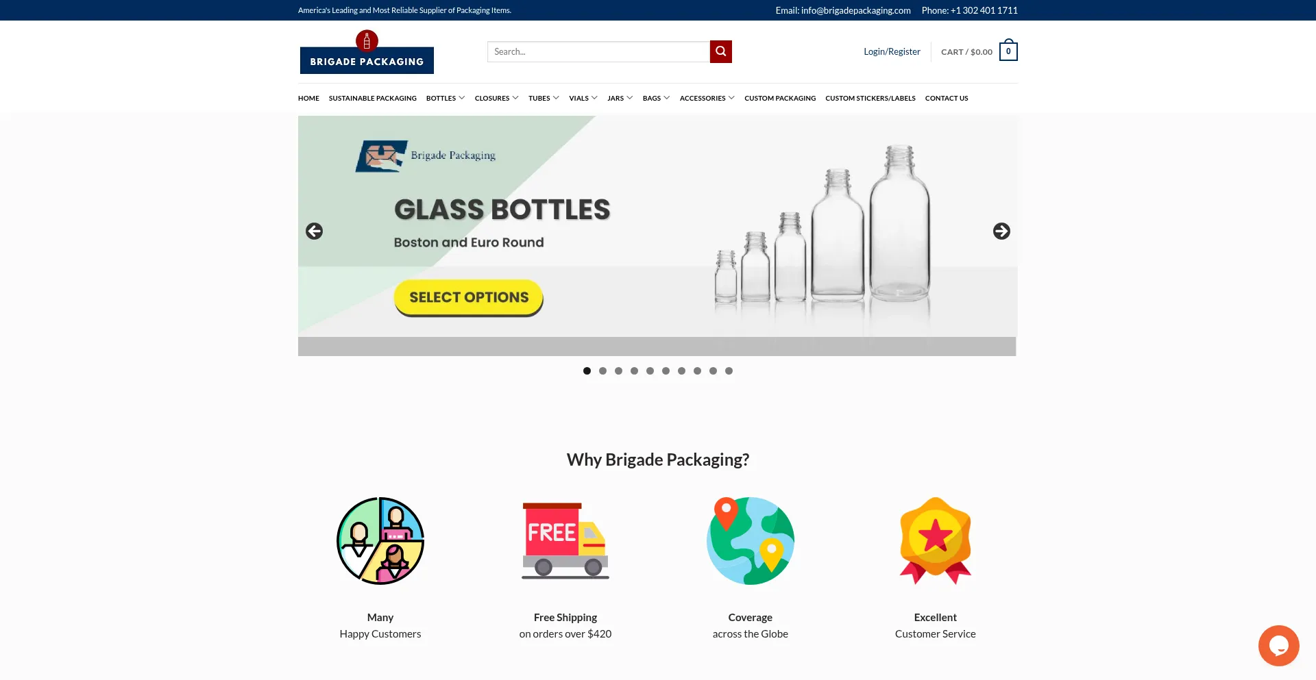 Brigade Packaging - Wholesale glass and plastic containers, caps, bottles, vials, jars, bags and packaging supplier to manufacturers in USA.