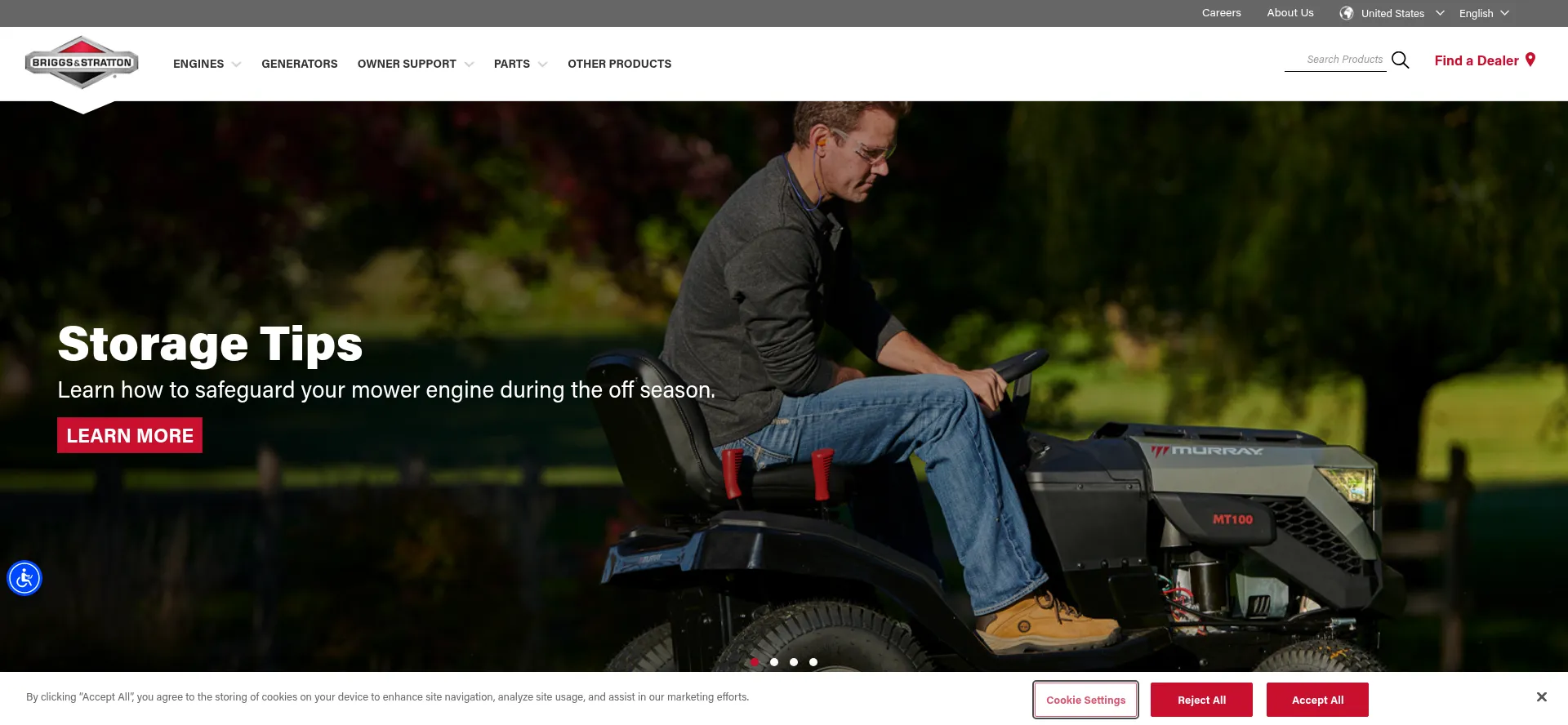 该网站实现符合GDPR或CCPA等隐私法规的cookie同意机制。这表明 briggsandstratton.com 遵守数据保护标准并为用户提供对个人数据收集实践的控制。