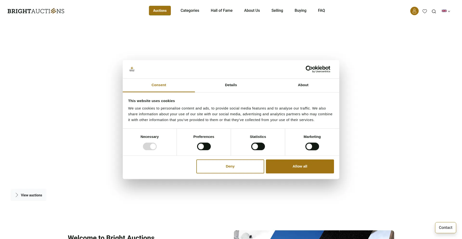 该网站实现符合GDPR或CCPA等隐私法规的cookie同意机制。这表明 brightauction.com 遵守数据保护标准并为用户提供对个人数据收集实践的控制。