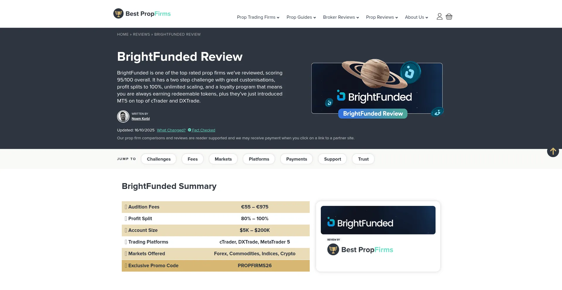 BrightFunded is a popular prop trading firm with fast payouts, up to 100% profit split, and up to 400k scaling.