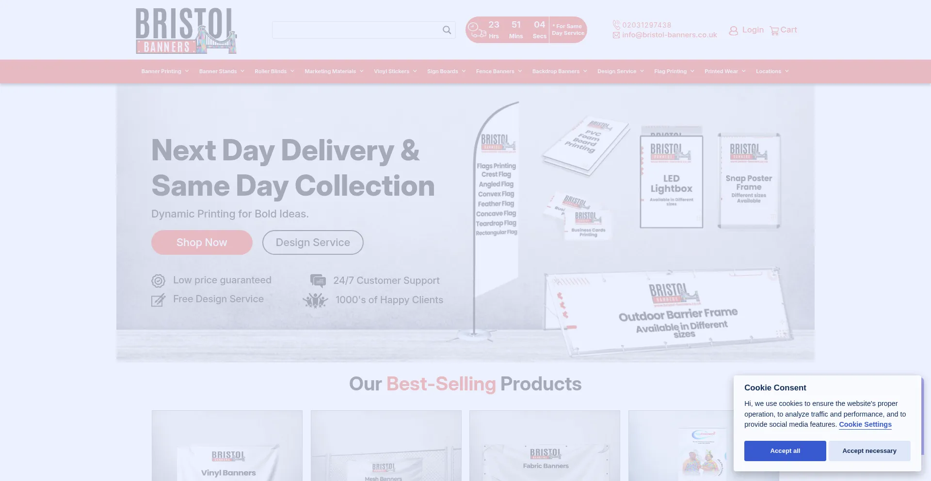 bristol-banners.co.uk 使用 Bootstrap,这是一个广泛采用的开源响应式网页开发框架。Bootstrap 通过标准化组件和样式实现移动友好界面的高效创建。