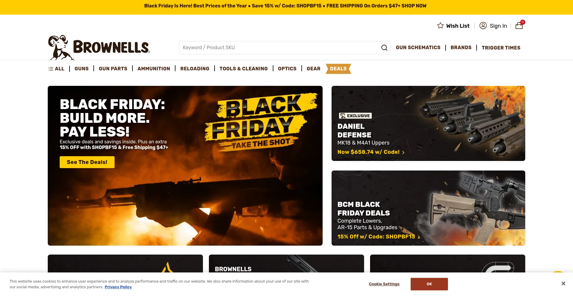 Brownells has the Best Black Friday and Cyber Monday deals for 2025 including Free Shipping over $47 + 15% off with code.