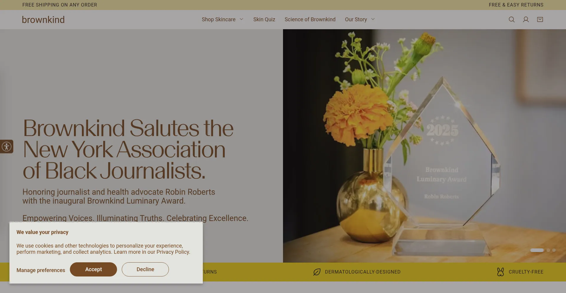 Brownkind offers dermatologically-designed skincare for melanin-rich skin. Find effective solutions for dark spots and dryness, with free shipping and easy returns!