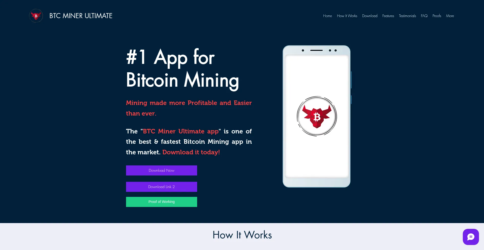 网站 btcminerultimate.com 可能提供云挖矿服务或加密货币挖矿投资。一些平台提供合法的挖矿租赁服务,而其他平台可能使用虚假的挖矿仪表板来显示无法提取的虚拟收益。