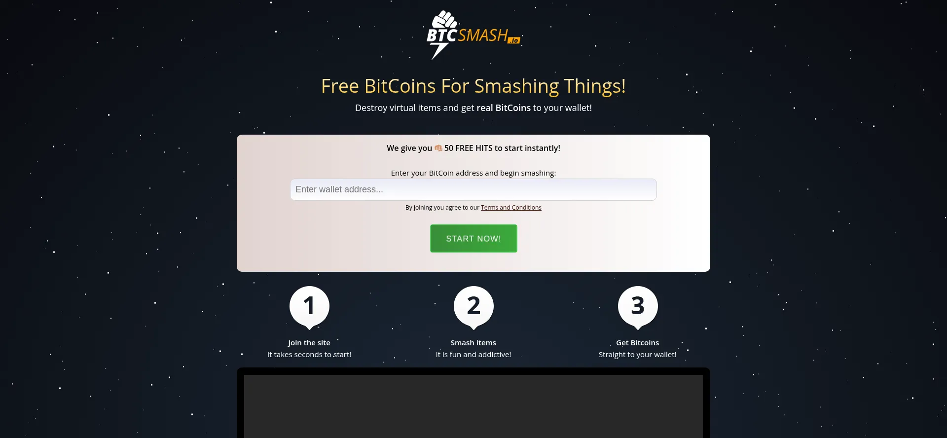 Smash virtual items and get BitCoins! No deposits - simply enter and start playing! Withdraw BitCoins directly to yoru wallet! Hits always refill every automatically!