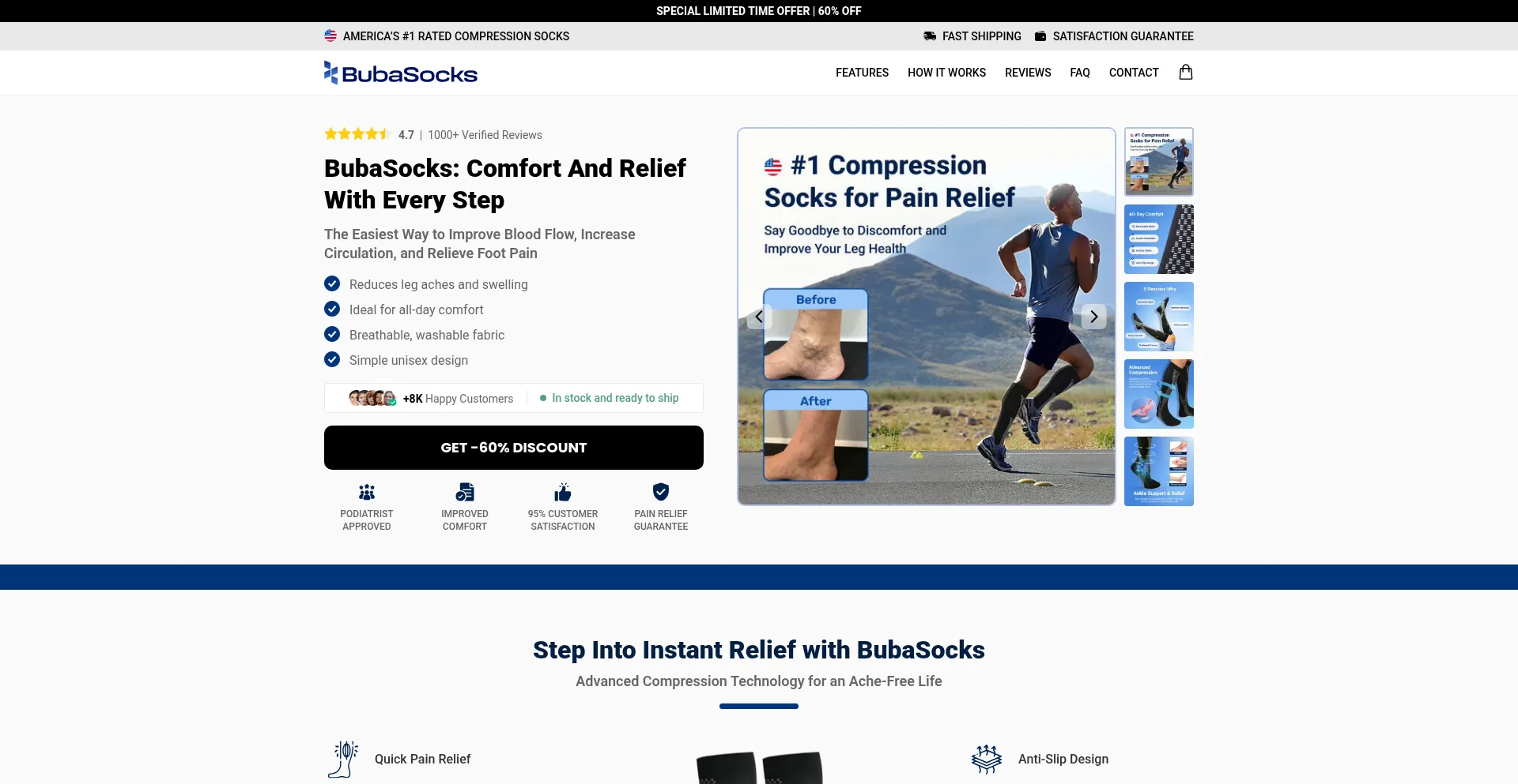 BubaSocks are designed with advanced compression technology to provide ultimate comfort, support, and pain relief. Perfect for all lifestyles, our socks are breathable, durable,...