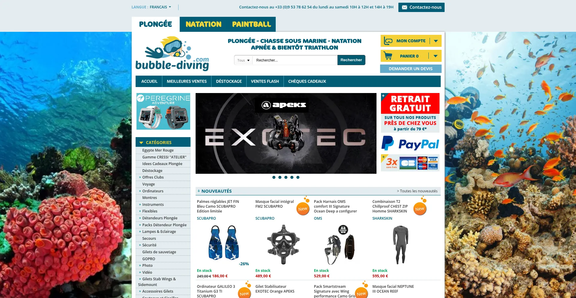 Venez découvrir la boutique en ligne de Bubble Diving pour l’équipement et les matériels de plongée comme les combinaisons, les bouteilles, palmes…