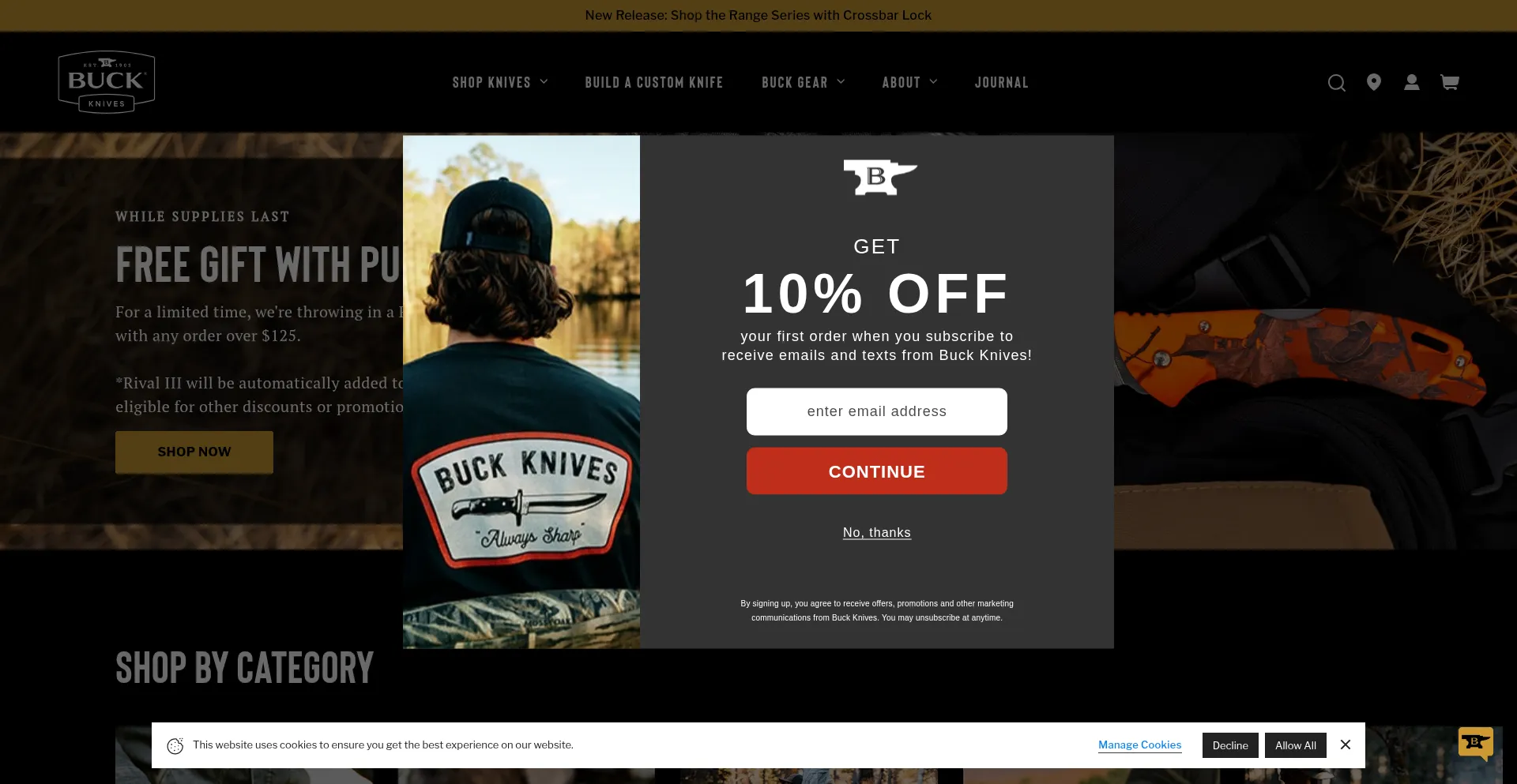 该网站实现符合GDPR或CCPA等隐私法规的cookie同意机制。这表明 buckknives.com 遵守数据保护标准并为用户提供对个人数据收集实践的控制。