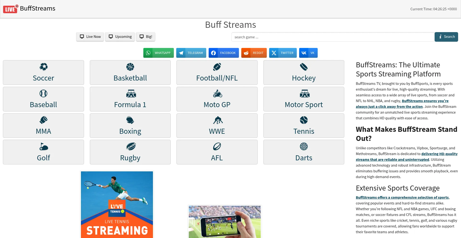 BuffStreams coverage from BuffSports. Enjoy HD live sports events, including football, nfl, basketball, soccer, and more, all in one online.